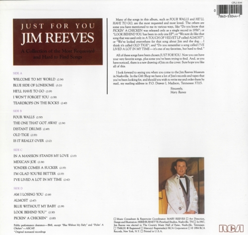 James Travis "Jim" Reeves (August 20, 1923 - July 31, 1964) was a Texan Country and popular music singer-songwriter. With records charting from the 1950's to the 1980s, he became well known as a practitioner of the Nashville sound ( a mixture of older country-style music with elements of popular music).